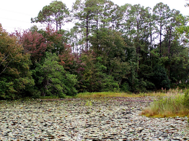 I don't know what they see out there...could be a dead turtle or something like that. I've wondered what's happened to all of the turtles who used to live in the pond. I wish I could walk out there across the pond and see if I can find out what it is, but even though it is dry, there are places where I am sure I could break through the dry crust and sink up to my knees in muck, and I am definitely not willing to take that risk. So whatever it is, I hope the buzzards clean it up before it starts to "smell". That's what they are good for...all a part of the cycle of life and death in the wild.