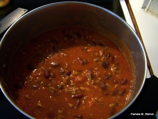 Okay, I started writing this post Saturday morning, and then never got back to it. Things got busy...pleasantly so. We woke up to a rather "chilly" morning for us...in the 40's after the past couple of weeks being summer like weather...so, a "chilly" day means it is time for "chili"...