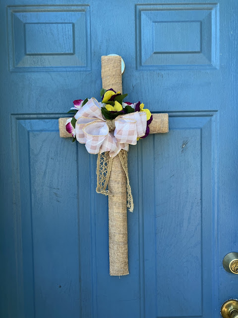 I like the cross better for the door because that is the message that I prefer to give to the neighborhood for Easter...the Cross is what made all the difference in our lives and brought us salvation! But the resurrection of Christ from the grave is what gives us eternal life!